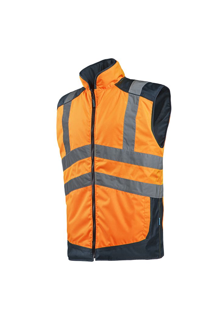 Tuulenpitävä huomiovärinen lämpöhuomioliivi. Ulkokangas vettähylkivää. Voidaan käyttää myös kääntöliivinä. Toinen puoli musta. Vetoketjukiinnitys. Kaksi taskua molemmilla puolilla.