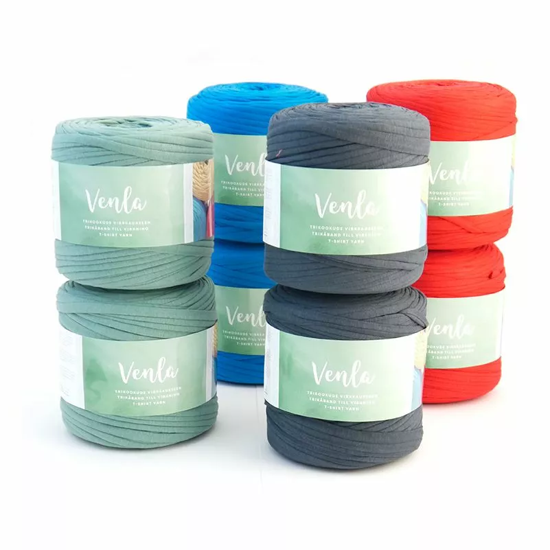 Venla on rullalla myytävä trikookude, joka on valmistettu erityisesti virkkaajia ajatellen. Yhdestä Venla-rullasta virkkaat n. 50×50 cm.