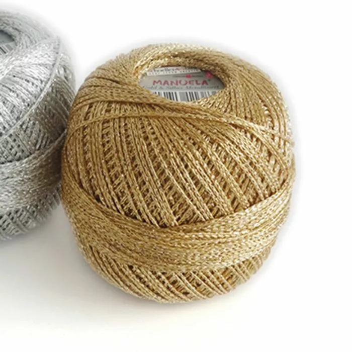 Schoeller Stahl Manuela -tehostelanka tuo kaunista ja juhlavaa metallinhohtoa käsityöihin. Lanka sopii neulontaan ja virkkaukseen, sekä käytettäväksi yhdessä muiden lankojen kanssa, kun työhön tarvitaan ripaus kullan tai hopean kimallusta.
