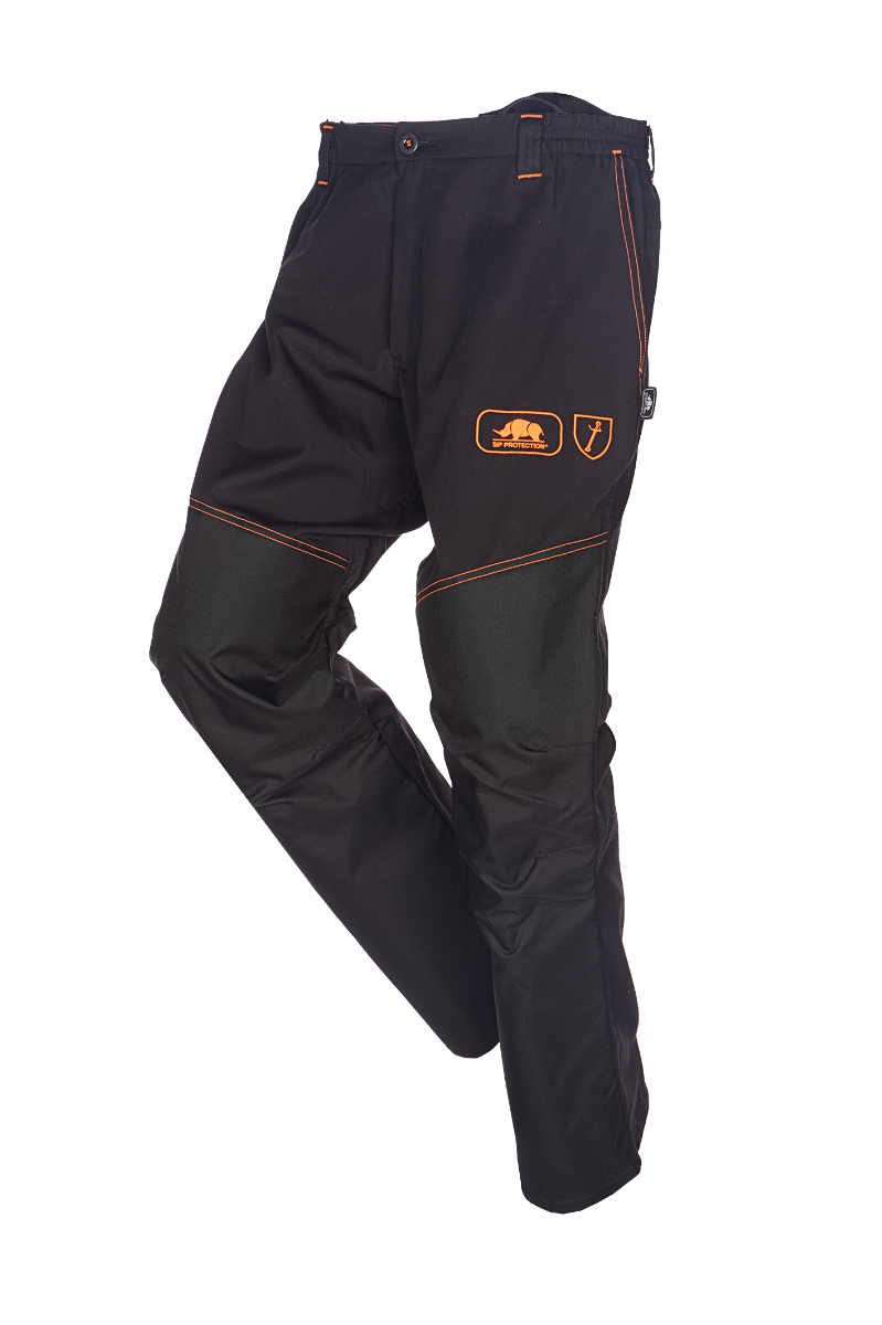 Kevyet raivaushousut, jotka suojaavat jalkoja kiinteän ja iskunkestävän pehmusteen ansiosta. Etuosassa hengittävä ja vedenpitävä Siopor® kangas.